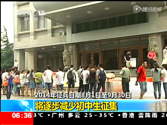 据了解,今年征兵工作将把重心放在征集高素质兵员上,自8月1日全面展开,至9月30日结束。